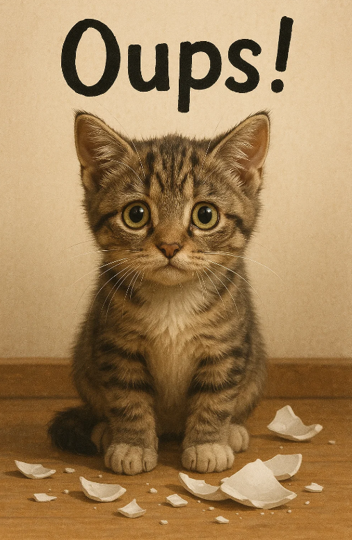ένα γατάκι που έχει κάνει ζημιά.